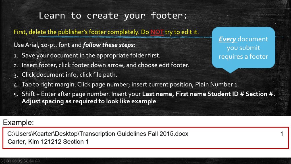 - Date transcribed (the day you are working on the report)