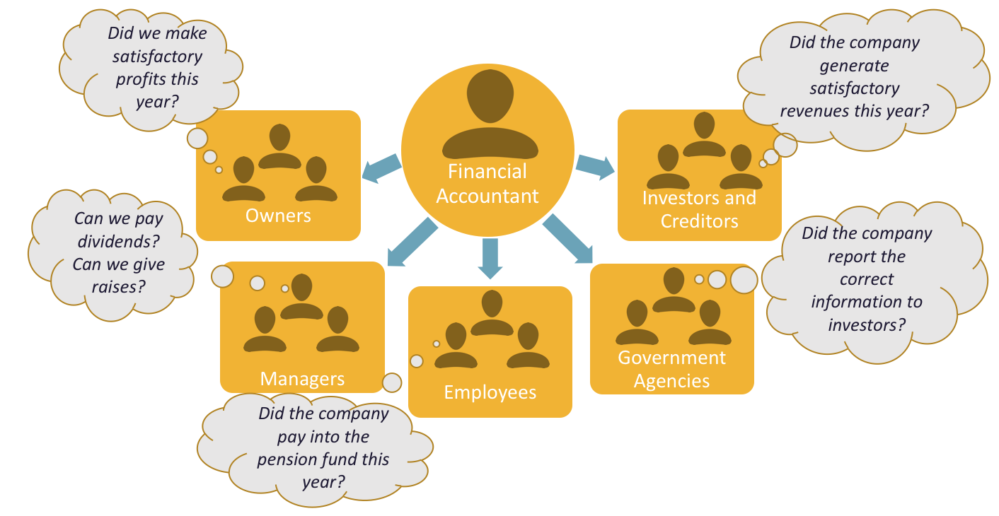 Accounting is often called “the language of business” because it communicates so much of the information that owners, managers, and investors need to evaluate a company’s financial performance. These people are stakeholders in the business—they’re interested in its activities because they’re affected by them. The financial futures of owners and other investors may depend heavily on strong financial performance from the business, and when performance is poor, managers may be replaced or laid off in a downsizing.