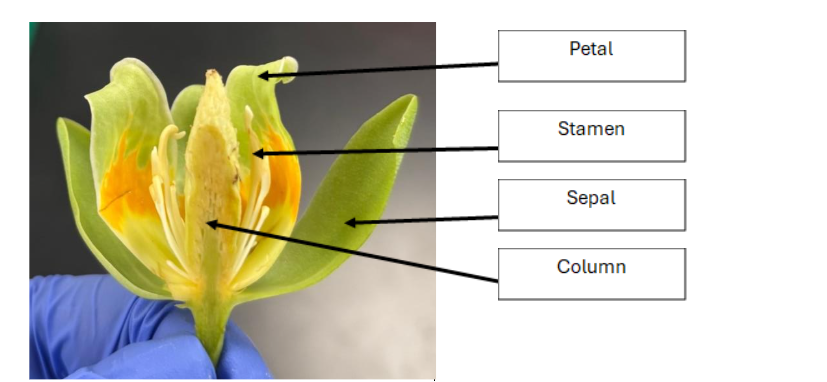 Tulip trees flower in mid to late spring with singular tulip-shaped flowers that have six petals. The petals are light green in colour with a band of bright orange in the middle and a pale-yellow base. These trees flower for the first time between the ages of 15 and 20 and will continue to flower for upwards of 200 years in the right conditions (Beck, 1990). These flowers are shown below in figures 1.10.2 A & B.