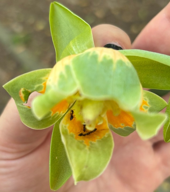 Figure 1.10.7. Fallen Liriodendron tulipifera flower with ants. Photo © BIOL-3010 Students, CC BY 4.0. [Click to enlarge]