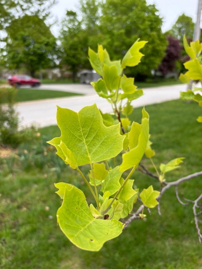 Tulip trees are tall, fast-growing trees that can reach approximately 25-35 meters in height, and their trunks can reach 50-160 cm in diameter (Ontario Ministry of Natural Resources and Forestry, 2014). Their leaves are large and flat, with four pointed lobes and a light green colour, approximately 7-12 cm in length (Ontario Ministry of Natural Resources and Forestry, 2014). Liriodendron tulipfera leaves have alternate growth and have long petioles (U.S. Department of Agriculture, Natural Resources Conservation Service, 2014). These leaves are shown below in Figures 2 and 7.