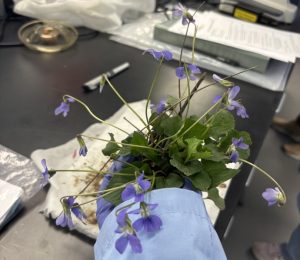 Viola Sororia, also known as the blue violet, comes from the flowering plants called Violaceae. They are perennial, therefore they re-grow each year from the same root (NC State Extension Publications, n.d.). It is also an herbaceous vascular plant, so it does not contain any woody tissues. Viola sororia does not contain roots; instead, they uses rhizomes that grow horizontally to reproduce asexually. Additionally, they can also reproduce with closely related species in the Violaceae family, as it is interfertile.