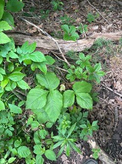 The leaves come with 2 leaves (alternate phyllotaxy) with 3 leaflets each that take on a T-shape formation on their own stems. There is a spathe (AKA the pulpit) that covers the spadix (AKA the Jack) underneath it (Native Plant Gardener). The spathe is lined with purple and white on the inside and the outside has white and green lines. The spadix is completely covered by the spathe, and it has a purple and white pattern on it. The plant is distinct as it looks like the spathe is trying to hide and cover the spadix. The spathe completely encloses the spadix from the stem, then it curls on top of it. The spadix can be seen coming out of the spathe tube. To identify whether the plant is Jack or Jill in the Pulpit, you would need to look inside the spathe leaves near the base of the spadix. If it is a Jill, it will have green, premature berries in spring and early summer, but bright red berries in mid to late summer. If it’s a Jack, stamens with pollen will be found at the base of the spadix (Nature Conservatory of Canada).