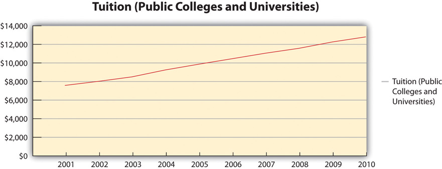 Bar graphs are good for comparing amounts. In the same speech, you could compare the tuition of two-year institutions to that of four-year institutions. Graphs help make numerical data more digestible for your audience and allow you to convey an important numerical trend visually and quickly without having to go into lengthy explanations. Remember to always clearly label your x-axis and y-axis and to explain the basics of your graph to your audience before you go into the specific data. If you use a graph that was created by someone else, make sure it is large and clear enough for the audience to read and that you cite the original source.
