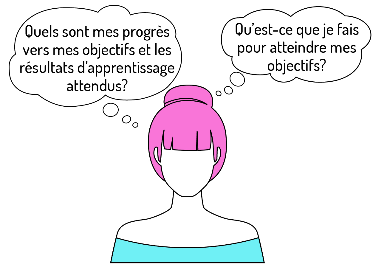 Cette phase comporte la concrétisation de vos plans. Vous mettrez votre plan en pratique, vous continuerez à effectuer le suivi de vos progrès et vous apporterez les modifications que vous jugez nécessaires à votre plan. Posez-vous toujours les questions suivantes : « Quels sont mes progrès dans l’atteinte de mes objectifs et des objectifs d’apprentissage du cours? Qu'est-ce que je fais pour atteindre mes objectifs? »