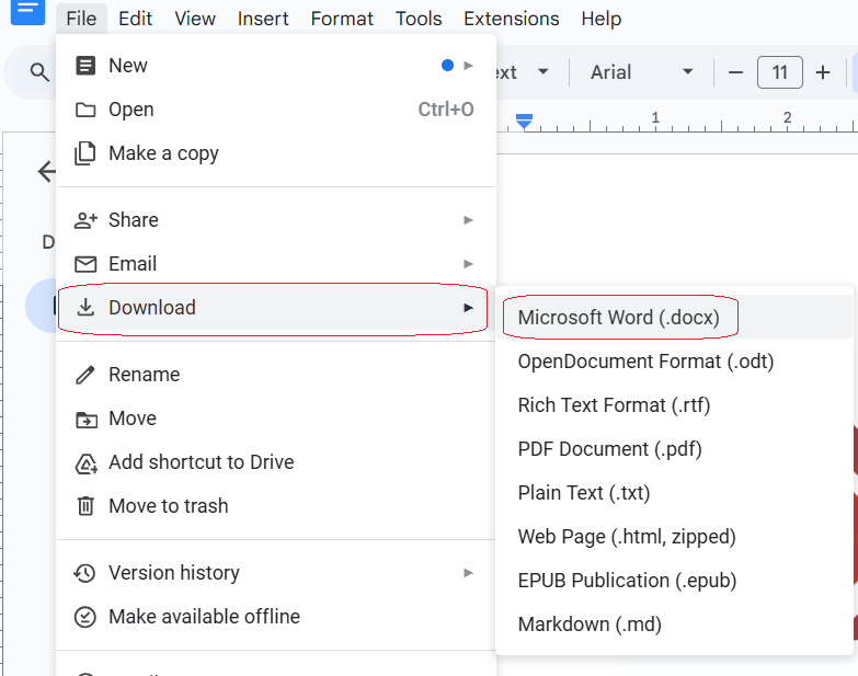 When it is time to submit your completed workbook to FOL you can download a copy. To download the workbook into Microsoft Word, navigate to the File menu, choose Download, and Microsoft Word.