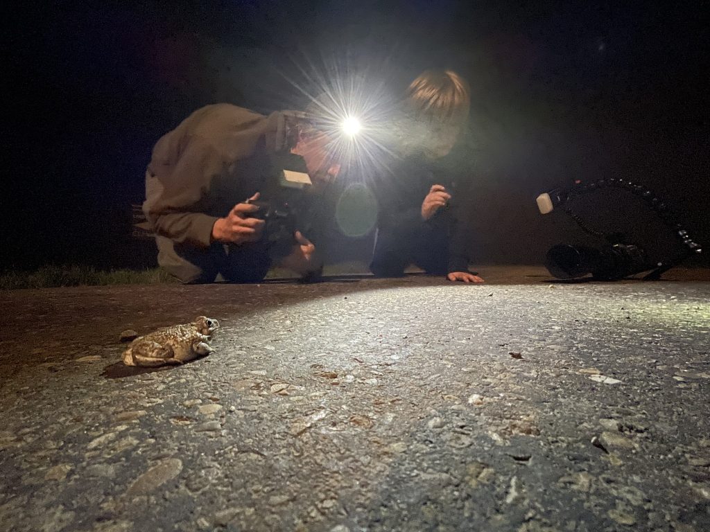Rainy nights during the breeding season is a great time to observe amphibians. Plains spadefoot toad (Spea bombifrons) migrating to a breeding pond at night. Photo: G. Bulté