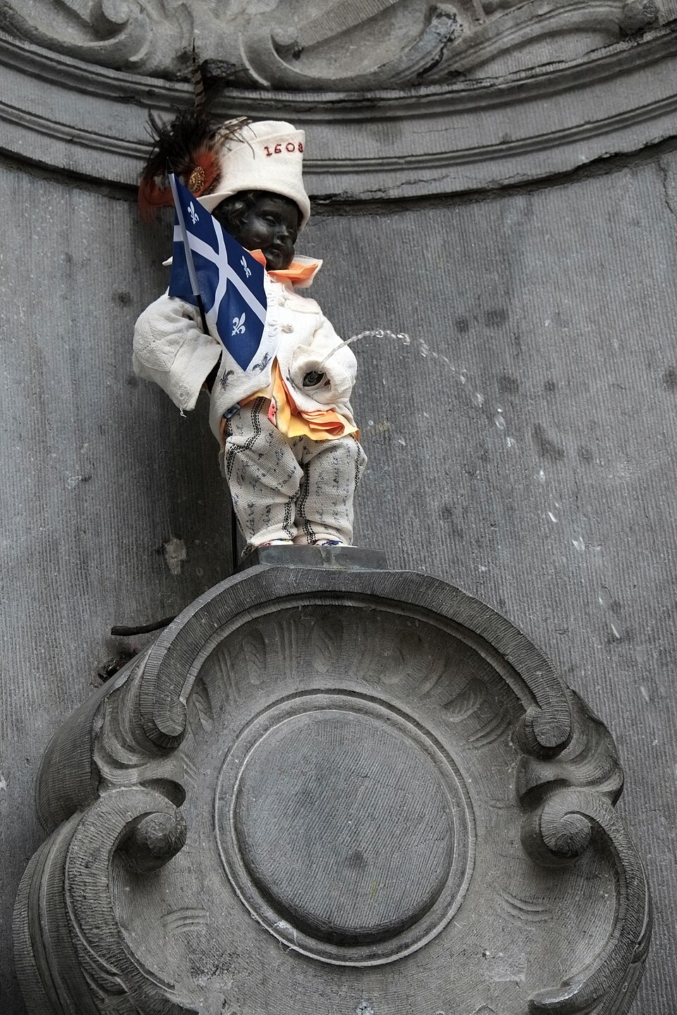 Inaugurée en 1987, Jeanneke Pis (opens in a new window) est la version féminine de la célèbre fontaine : une petite fille en bronze, accroupie et en train d’uriner. L’idée était triple : apporter un peu de vie dans un cul-de-sac un peu oublié, réaffirmer une forme d’égalité (fille/garçon), et surtout injecter un humour moqueur typiquement bruxellois – la zwanze (opens in a new window). Contrairement à Manneken Pis, Jeanneke n’a pas de garde-robe et reste “naturelle”, sans costumes.