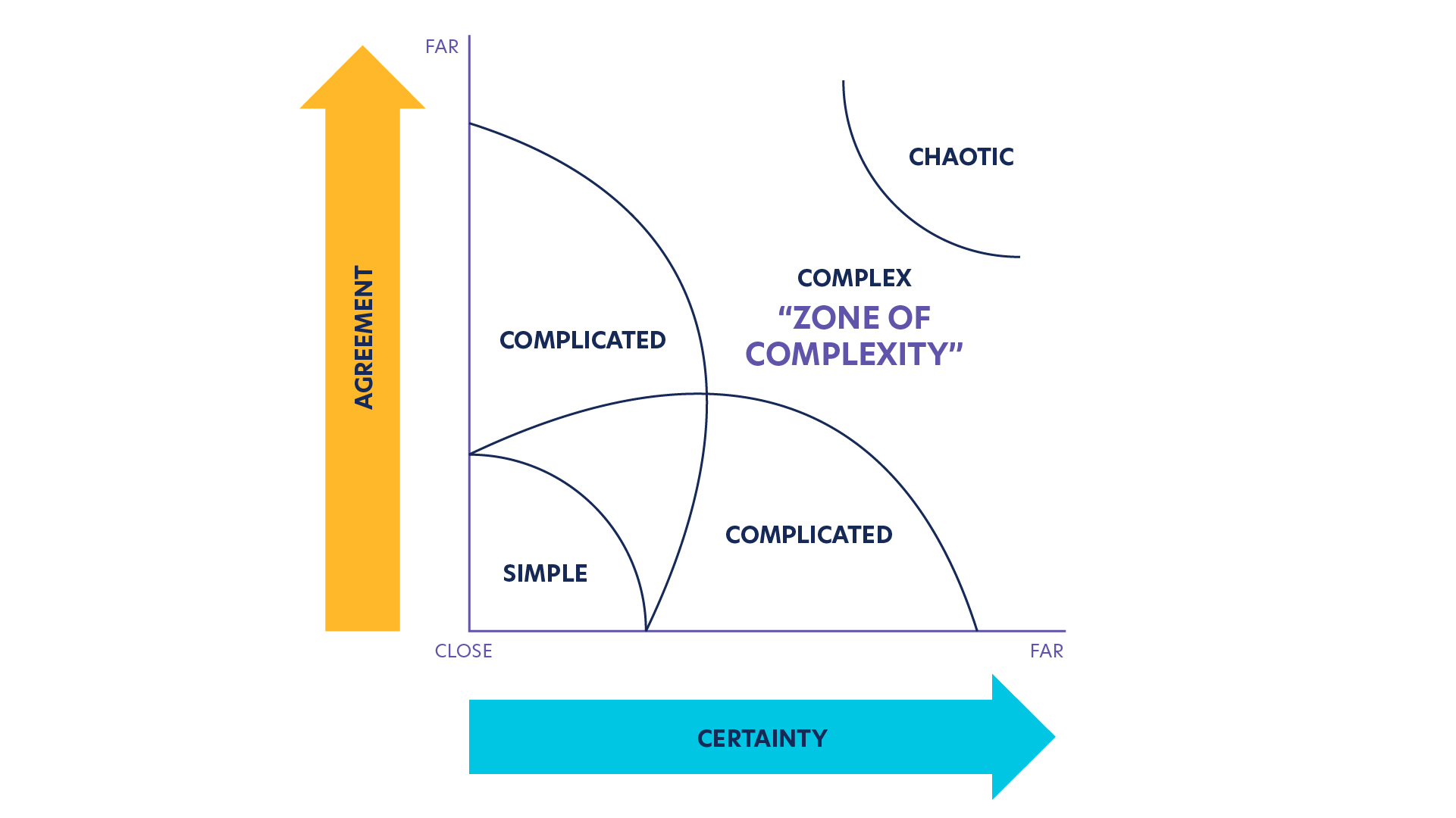Problems are complex when their solutions need to be created in conditions where both agreement and certainly are low, although neither is at its lowest. When an intervention fails to generate both agreement and certainty, what we are dealing with is chaos.