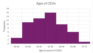 - How many CEOs are between [latex]55[/latex] and [latex]64[/latex] years of age?