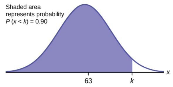 - We want to find the value of [latex]x[/latex] so that the area to the left of [latex]x[/latex] is [latex]0.9[/latex].