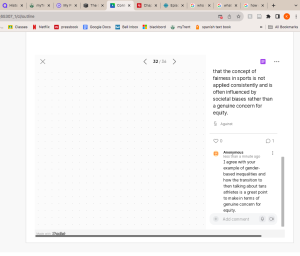 Do you agree? Why? In your experience, how fair are sports? Feel welcome to add a video response in the padlet and provide an example if you’re willing. Make sure you include a screenshot of your response in your notebook.