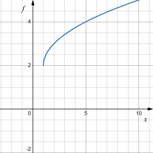 Note that this transformation has changed the domain and range of the function. The new function’s domain is [latex][1,\infty)[/latex] and its range is [latex][2,\infty)[/latex].