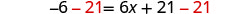 | Subtract \(21\) to get the constants on left. | ![]() |