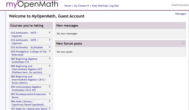 My Open Math (MOM) is an open learning management system that delivers homework, quizzes, and tests with rich mathematical content. Students can receive immediate feedback on algorithmically generated questions that include numerical or algebraic expressions as answers. It is also a complete course management system, including file posting, discussion forums, and a gradebook. Faculty can build their course or use or modify one of the shared template courses.