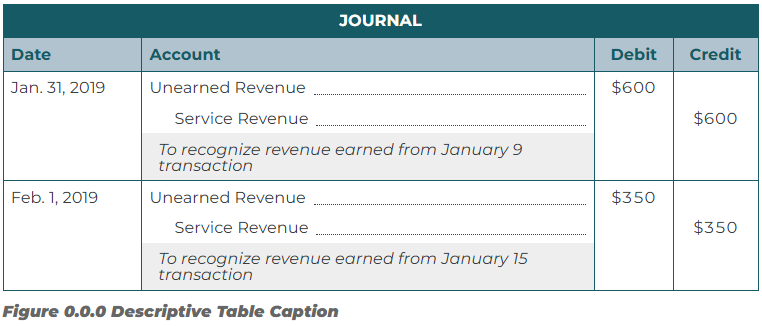 | Jan. 31, 2019 | Unearned Revenue | $600 | ||