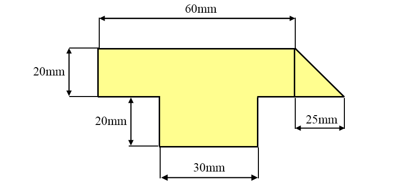 - [latex]20 \times 60 + 20 \times 30 + \frac{25 \times 20}{2} = 2050 \, \text{mm}^2[/latex]