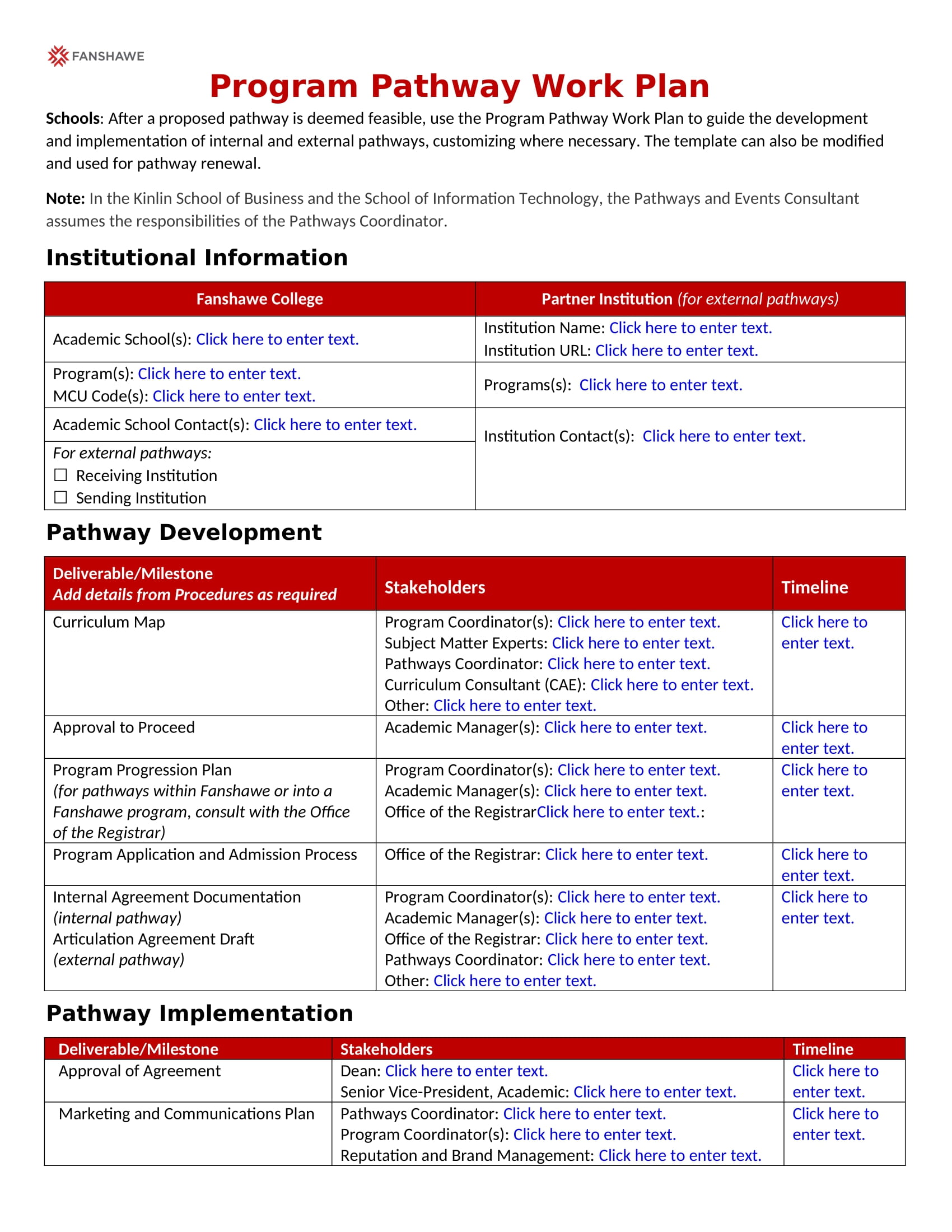 Download a fillable MS Word version (99.4 KB) of the Program Pathway Work Plan, as shown below: