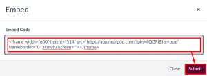 - Paste your embed code in the pop-up that appears and click “Submit”.