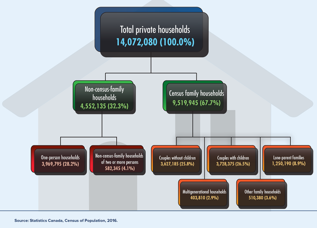 Figure 14.2 long description: Overview of Household Types, Canada, 2016.